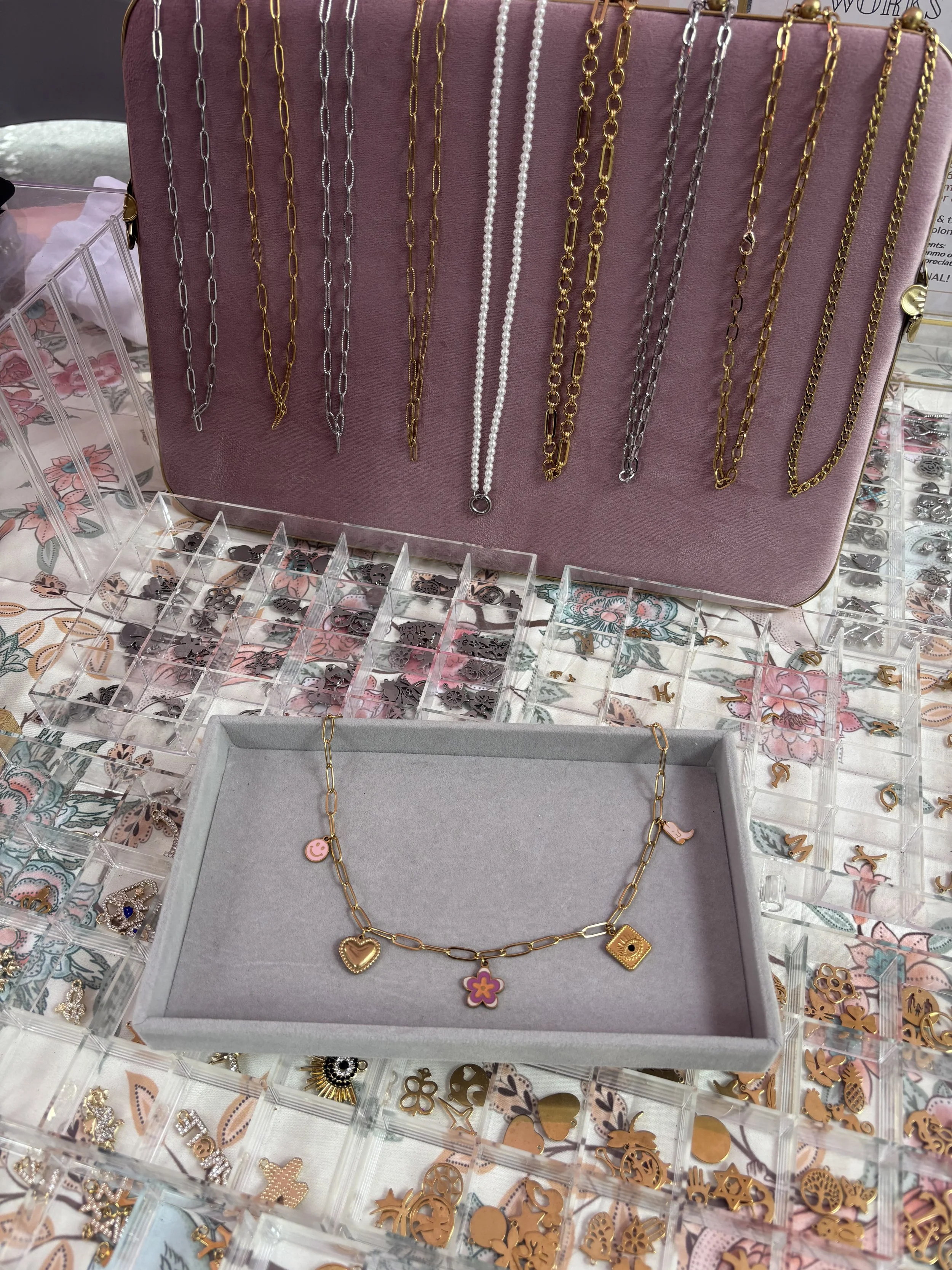 Our Charm Bar brings a creative jewelry experience directly to your event. Guests design their own charm necklaces or bracelets by selecting from a variety of curated charms, creating a piece that reflects their personal style.