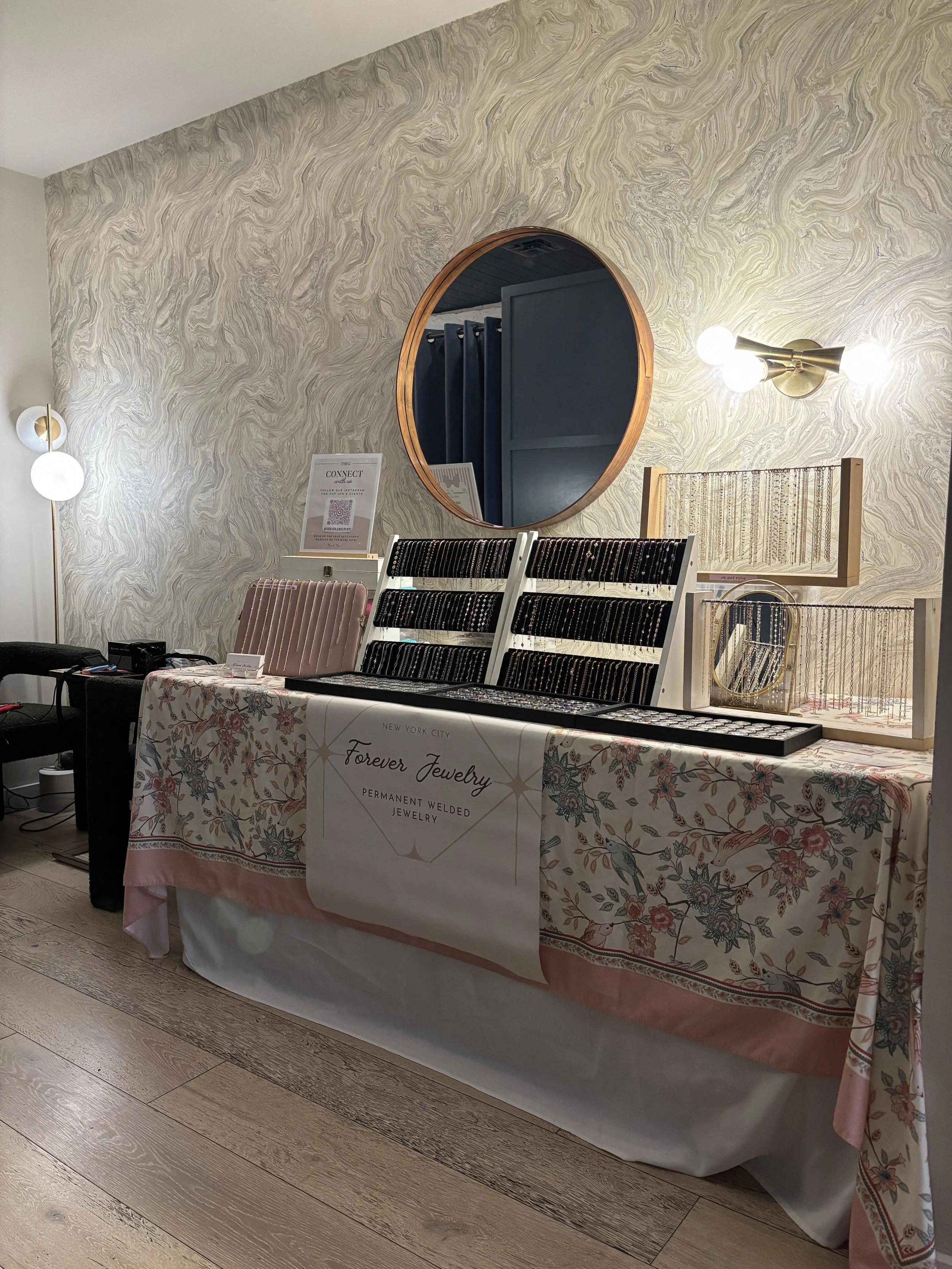 Forever Jewelry NYC specializes in custom permanent jewelry designed to be worn every day. Located in Midtown, Manhattan, New York City. We offer clasp-free bracelets, anklets, handchains, waistchains and necklaces that are custom fit and welded for a seamless, lasting look. Book a private permanent jewelry appointment or hire us for your next party or special event.