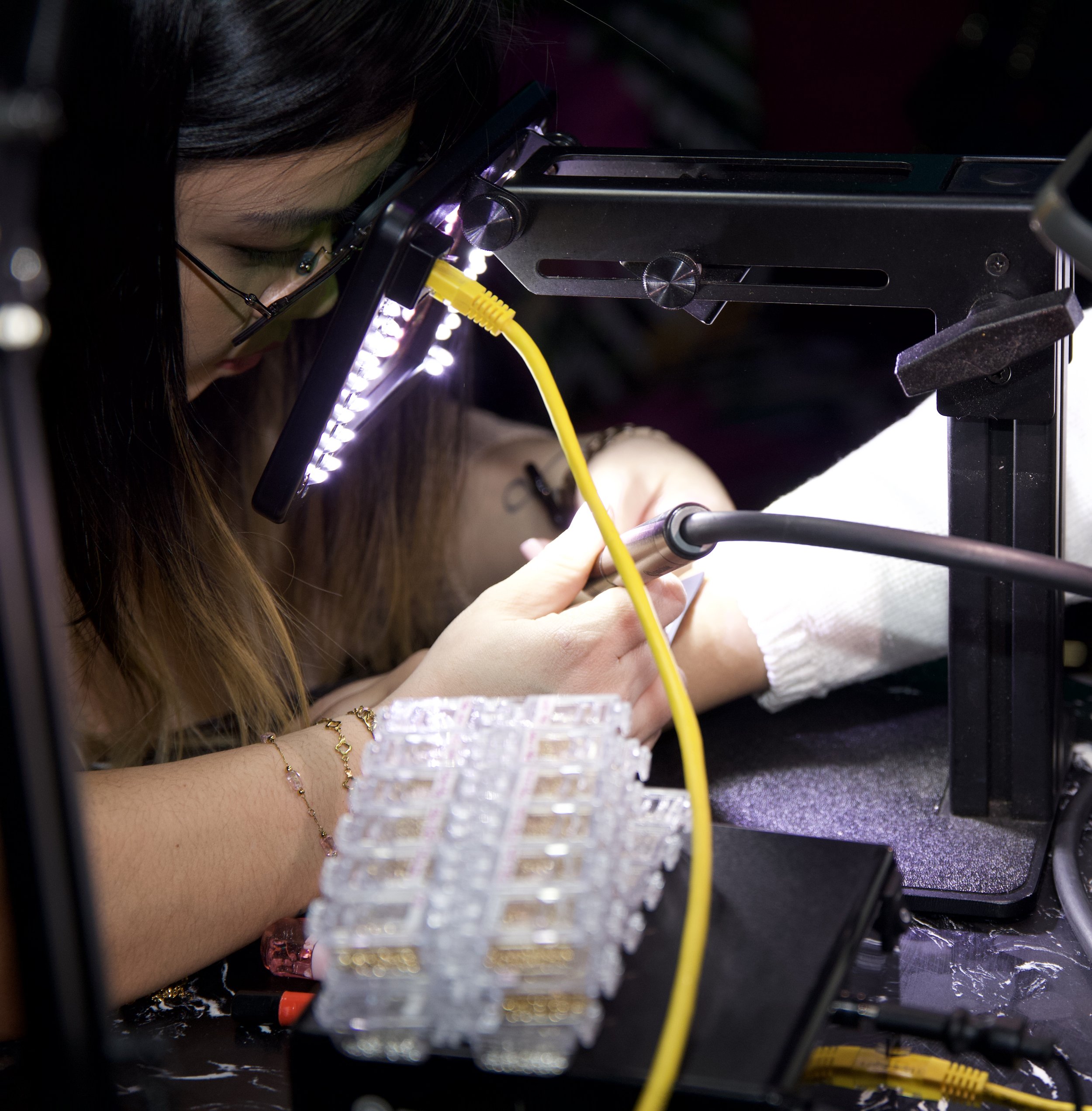 The jewelry is measured to your wrist, ankle, or neck and then safely welded closed—no clasp needed. -